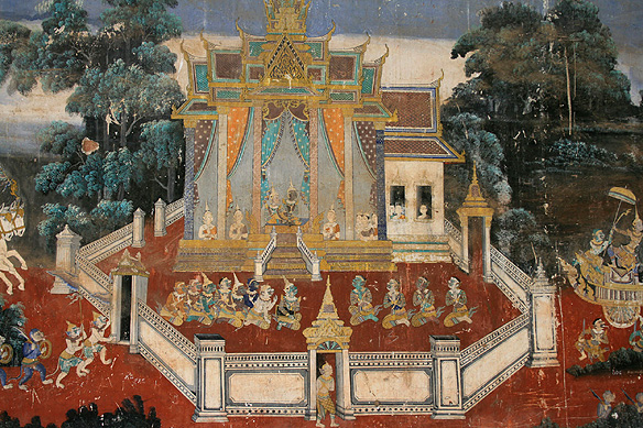 Elegant halls and intricate wall paintings decorate the Royal Palace