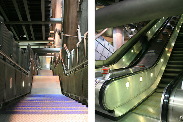 I love the tube. It is so lived in. Comfortable, and efficient. But the section of the Jubilee Line that I have here is the most spectacular part. Avant garde, monumental, sleek; scores of feet underground. Enjoy.