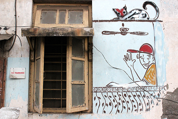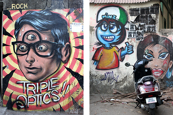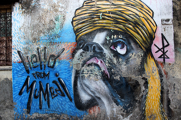 Whilst my earlier post was on the hidden graffiti of Bandra, this post is my take on the much photographed, media savvy, well-known street art of Bandstand and the Chapel and Waroda Roads in Ranwar village, undertaken by the Bollywood Art Project and the Mumbai Wall Project. Artists from all over the world have contributed to the latter, artists both unknown, as well as, famous. One of the original 24 hamlets of Bandra, dating back to the 1500s,Β Ranwar is a world in itself. The graffiti is the cherry on the cake. And very often, the cake itself. πŸ™‚