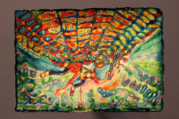 The paintings, sized at 8.5 X 12 inches, are ‘untitled’. Befitting I would say, for a title would merely put them in a box. Untitled, they are open to being absorbed into the viewer and analogies derived, each to his own.