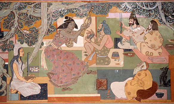 Whilst some parts of the frescoes are in impeccable condition, the paint peels away in others. But these time and weather induced blemishes do not diminish the panels’ aesthetic beauty one bit. My favourite is that of Mirabai in her Marwari dress, deep in meditation. Which one do you like the most?