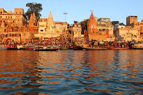 If Varanasi is beautiful from the ghats, it is even more so from the river, across the wide expanses of the Ganges, at sunrise and sunset. See the image above and I hope you will understand what I mean.