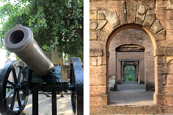 Left: The 80-pounder smoothbore muzzle loading cannon, one of four, that was used by the Royal Indian Artillery to recapture the Residency in 1857; Right and Below: Probably the most imposing structure in the whole complex, the Banqueting Hall was built by Nawab Saadat Ali Khan for banquets to be held in his own honour. At one time it comprised grand saloons furnished with chandeliers, mirrors, and silk-clad divans.