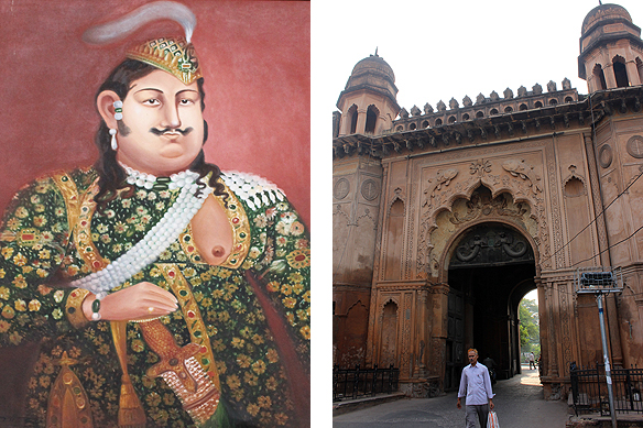 Left: The 11th and last Nawab of Lucknow, Wajid Ali Shah, who built Qaiser Bagh; Right: One of the two Lakhi gates which lead into the complex.
