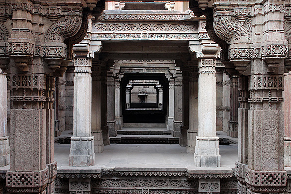 190 feet long by 40 feet wide, the ornate Dada Hari Ni Vav was built as a “travellers’ rest-house” in the 15th Century; Right: Detail, Dada Hari Mosque.
