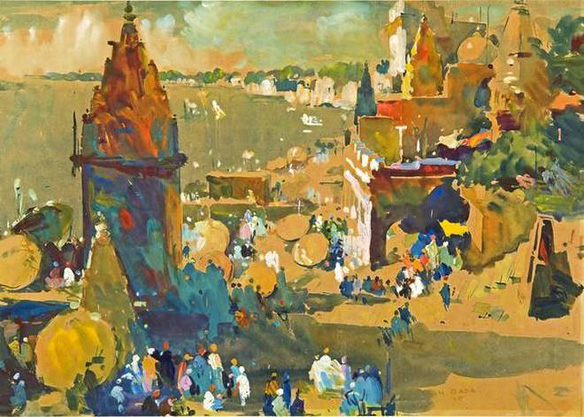 Painted on the spot, as was, and still is the norm with art college instruction, Raza’s subjects comprised Bombay’s street scenes and the cityscapes of Benaras, Nashik, Indore, and Jaipur in this phase of his life. What set apart Raza’s paintings from those of his peers was a tendency to paint scenes repeatedly. Importantly, these watercolours are the only figurative paintings he did in his entire life.