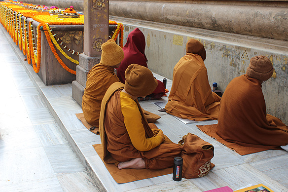 The rich Buddhist cultural tapestry that is Mahabodhi Temple Complex. During the winter months of India, different nations perform their religious ceremonies in its precincts, replete with full regalia.