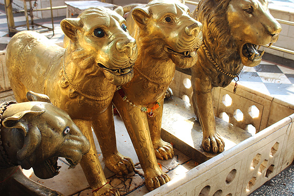Guardians of the inner shrine at Bajreshwari Devi Temple.
