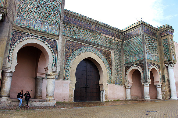 Bab al-Mansour, Mekne’s iconic gate does not lead anywhere. It is only for show. An Arabic inscription on it reads: “I am the most beautiful gate in Morocco. I’m like the moon in the sky. Property and wealth are written on my front.”