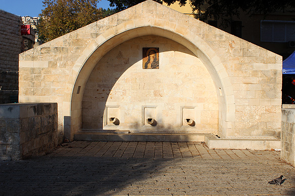 Remember, I said there are many sides to every story in Israel. Some believe Mary’s Well, fed by Mary’s Spring since ancient times, is where the Annunciation actually took place. Marked by a modern, public fountain, half a kilometre away from the Basilica, it functions as a base for pigeons and Israeli soldiers now.