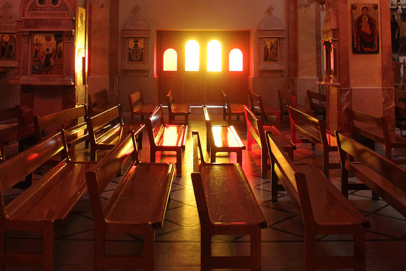 One such is the Synagogue Church, nestled deep in the Souk [local market]. According to custom, this marks the spot of the ancient synagogue where Jesus studied and prayed. It is also where he preached one Sabbath day and declared himself to be the Messiah, only to infuriate his own townspeople.