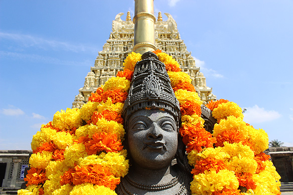 Garuda, Vishnu’s vehicle with the towering gopuram [1397 AD] behind him.