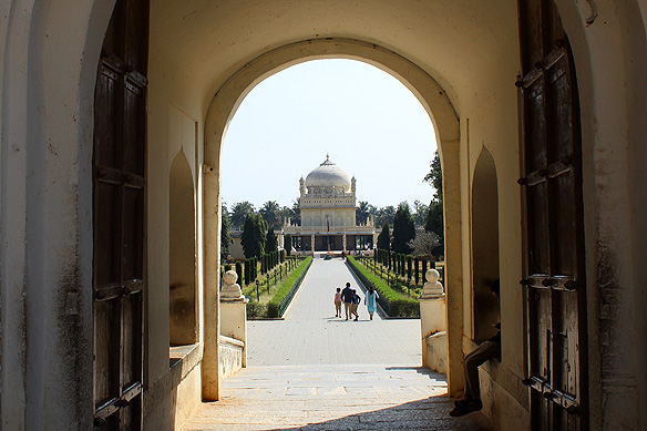 Another Indian treasure, now in the Victoria and Albert Museum, London, are the original carved doors which once stood at the mausoleum’s entrance. The present ebony embedded with ivory doors are Lord Dalhousie’s gift to Srirangapatna in 1855. Still beautiful enough. Dalhousie was also responsible for the restoration of Dariya Daulat Bagh that same year.