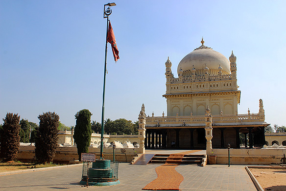 At the eastern end of the island is Gumbaz [or on google map: Tippu Sultan Shaheed Rahmatullah Alaih], Tipu Sultan’s burial place. It is a lovely edifice in the Persian style flanked by the Masjid-E-Aksa mosque. Tipu lies buried in the mausoleum with his dad Hyder Ali and mom Fakr-Un-Nisa under a ceiling painted with tiger stripes.