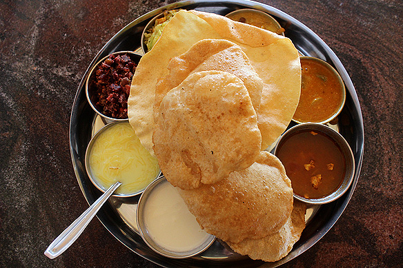 Mysore thali, my driver Zabu’s lunch—delectable and photogenic. I, on the other hand, had a prosaic plate of French fries and filter coffee. Where? Nalpak Restaurant across the road from Tipu Sultan’s Summer Palace.