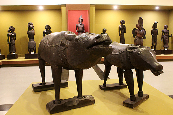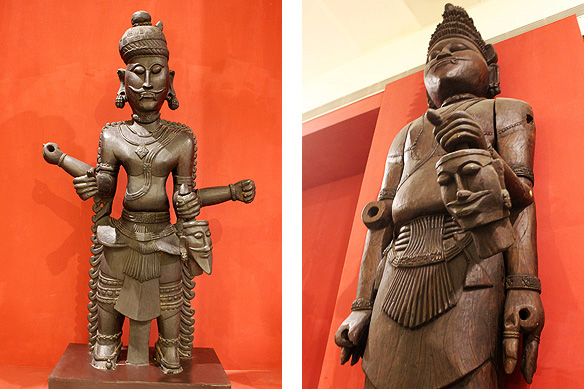 Bhuta Gallery [Karnataka, Wood]. These massive wooden statues [some are 15 feet high] are carved out of jackfruit trees and were originally painted in bright colours. The National Crafts Museum’s bhuta collection is one of the largest in the world.