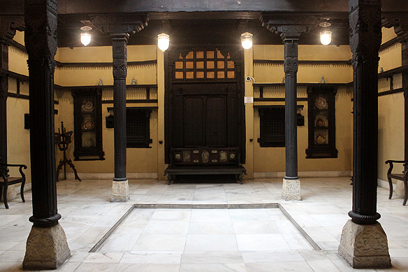This haveli belonged to a family from the Sunni Vohra community in Patan, Northern Gujarat. Richly carved and furnished with ornate niches and cupboards, it includes a mezzanine floor called Sojala used by the womenfolk. What’s interesting is that havelis owned by Hindus and Muslims in Gujarat were identical in decoration and difficult to tell apart. [Court Craft Gallery; audio tour stop no. 18]
