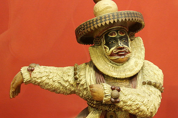 Kathakali Dolls [Kerala, Wood]. One of the eight classical Indian dance forms, Kathakali is indigenous to Kerala, both originating and practiced solely in the South Indian coastal State. Distinguished from other forms by its elaborate makeup, costumes and masks, along with martial art movements, it is centred around the Hindu epics and performed by male dancers. The fully developed style we see today traces itself back to the 17th Century. These dolls capture the essence of this dance style perfectly, don’t you agree? [Folk and Tribal Craft Gallery; audio tour stop no. 5]