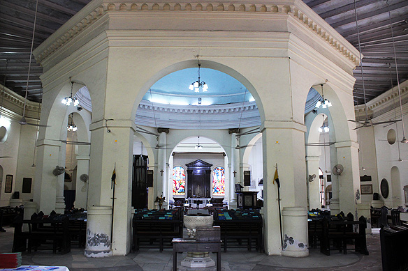 The church exteriors give no clue to the wonders that lie inside. Arches and intrados soar over pilasters topped with exquisite Corinthian and Ionian capitals. Sunbeams from skylights dapple over teak pews and a nave marked with its foundation stone. After less than four years since the stone was laid, the first sermon was held on 18 January, 1931.