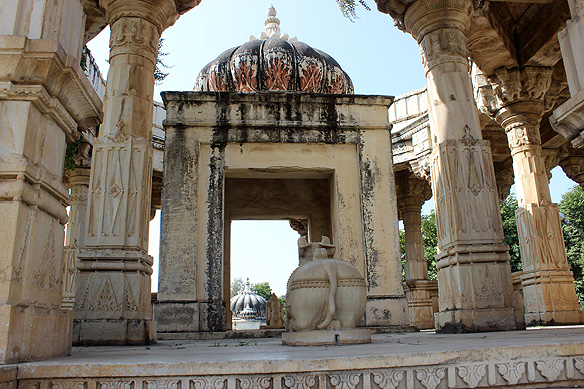 Three-hundred-and-seventy-two cenotaphs vie for space in Ahar, the royal crematorium 3 kilometres east of Udaipur. Kings, queens, their children and relatives, as well as favoured employees were all cremated here, the cenotaph marking the exact cremation spot. Of the 19 Maharanas or kings cremated, the most splendid structure belongs to Maharana Sangram Singh [r. 1710 – 34]. The oldest commemorates Udaipur’s 3rd ruler Maharana Amar Singh [r. 1597 – 1620], whilst the most recent belongs to the titular Maharana Bhagwat Singh [r. 1955 – 84].