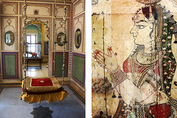 There is much to see inside. Not to be missed is the main entrance Tripolia which leads into Manek Chowk, the site for festivities and processions. Eight 17th Century Torans inside mark the spots where the rulers weighed themselves in silver or gold which was then distributed to the needy on special occasions. In the adjoining Ganesh Chowk is a 1620 marble idol of the Hindu god Ganesha.
