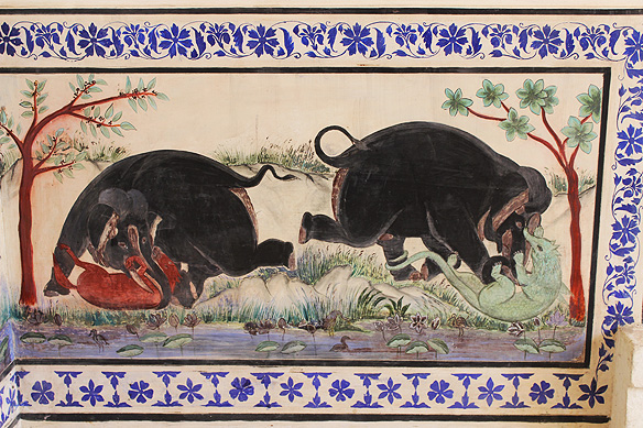 Published July 26, 2022 at 584 × 389 in the glories of mewar: impregnable kumbhalgarh and exquisite ranakpur Wall frescoes of hunter elephants line the lower walls of Badal Mahal.