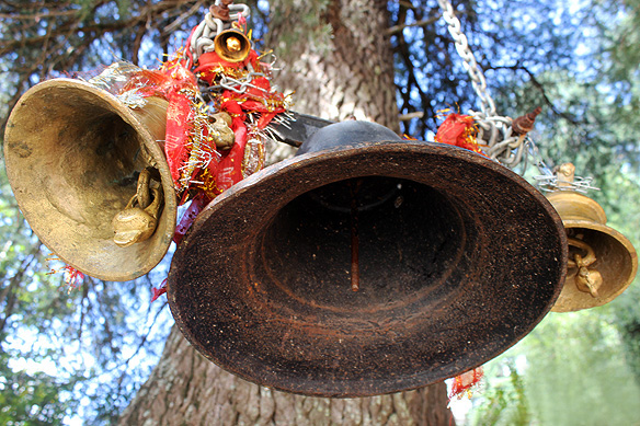 The temple, however, is only half the sacred site. A short walk away is an ancient tree surrounded with models of houses, strips of cloth, animal horns, and tridents. It is the altar for the worship of Vir [brave] Gatothkach—Hadimba and Bhima’s son born out of wedlock. Gatothkach was responsible for the Pandavas’ victory in the Mahabharata, and the subsequent rule of righteousness.