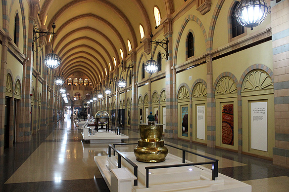 Highlights to watch out for are parts of the Ka’aba and its covering, the Kiswah, and a copy of the third Caliph’s 7th Century Quran. There are also models of mosques from different parts of the world illustrating how local traditions have shaped Islamic aesthetics. The science and technology gallery has impressive displays on Islamic astronomy, mathematics, and medicine whilst the art galleries comprise works of calligraphy and miniature paintings from the Ottoman, Safavid, and Mughal empires.