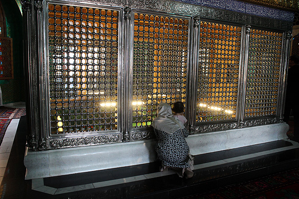 Inside, in a dark chamber with a glittering green ceiling, is the tomb of Bibi Heybat meaning ‘aunt of Heybat’ aka Okuma Khanim who lived in the 8th Century. She was the sister of the 8th Imam and a descendant of the Prophet Mohammed. Pilgrims file in and out of the shrine the whole day, paying their respects to her. Women need to cover their hair, and men, their knees.