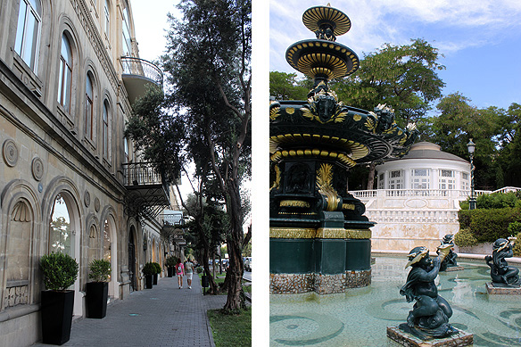 Left: Most of Baku’s pre-Soviet mansions now house high-end shops and have been broken into flats on the inside; Right: The stunning Art Nouveau Azerbaijan State Philharmonic Hall [1912] was originally a club for Baku’s wealthy.