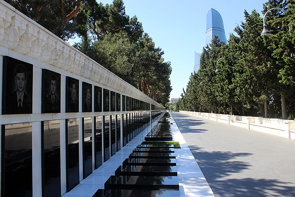 Martyrs’ Lane is a cemetery and memorial on Highland Park. It honours those killed in the First Nagorno-Karabakh War of 1988 – 1994, and during Black January, 1990. Some 15,000 martyrs are buried in the cemetery.
