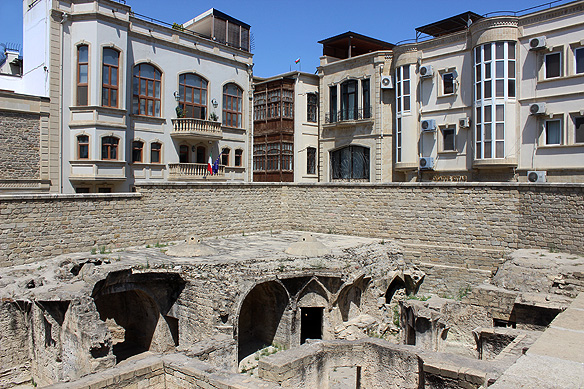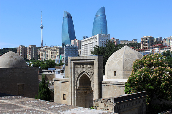 Six hundred years in a single frame: 15th Century Shirvan Shahs’ Palace with the 21st Century Flame Towers in the background. The Shirvan Shahs’ Palace complex comprises of multiple buildings ranging from residential and administrative to tombs, a mosque, and bathhouse.