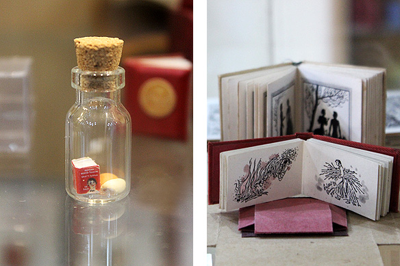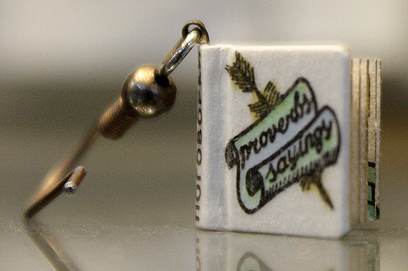 Another quirky exhibit: Micro-mini book [1/4 to 1 inch] earrings.