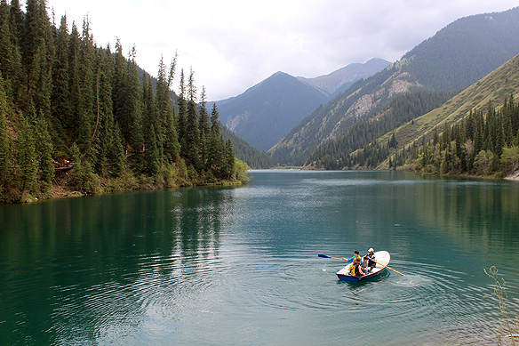 Lower Kolsai Lake’s charms are of the other kind–the paddle boat trip variety on serene silk-smooth waters hemmed in by pine-clad peaks. The lowest of a string of three lakes connected by a gushing icy river in the Kolsai Lakes National Park near the Kyrgyzstan border, it is the only one reachable by a motorable road. The other two lakes lie higher up on a hiking trail.