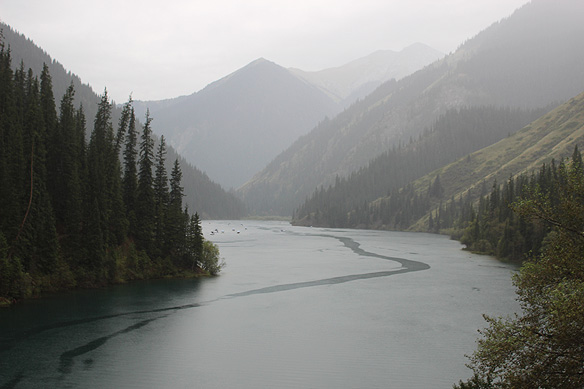 Lower Kolsai Lake in the span of an hour. Weather can be unpredictable in the mountains with sunny skies giving way to thunderstorms in a flash.