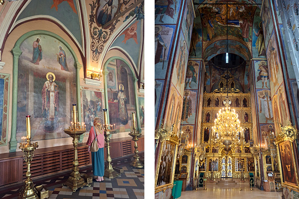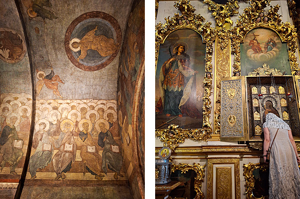 Left: Inside Peter the Great’s monks’ refectory; Right: Inside Ivan the Terrible’s Cathedral of the Assumption.