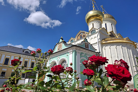 Peter the Great funded the monks’ refectory as a token of gratitude for the refuge given to him during the Streltsy Revolt. At its eastern end is the gold-leafed Church of St. Sergius.