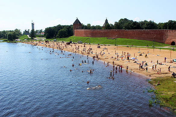 Sun, sand, and a river beach with Russia’s very first Kremlin in the background. The current fortifications belong to the 15th Century.