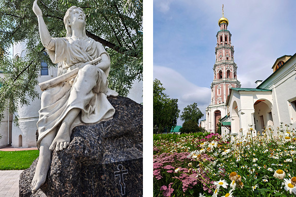 Tall trees, marble statues, and manicured lawns abloom with colour make for a serene walk as one winds one’s way past the many gold-domed churches. The royal ladies, perhaps, were not too miffed for being sent to live amidst such prettiness.