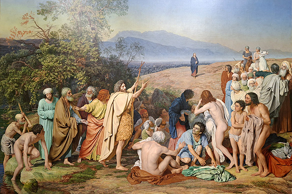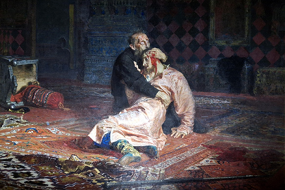 Works to look out for are Alexander Ivanov’s monumental ‘The Appearance of Christ Before the People‘ [1837 – 57] which took him 20 years to paint, Ilya Repin’s heart-wrenching ‘Ivan the Terrible and His Son Ivan‘ [1885], Vasily Surikov’s historical saga ‘The Morning of the Streltsy Execution‘ [1881], Valentin Serov’s ‘Girl with Peaches‘ [1887] which kick-started Russian Impressionism, and Mikhail Vrubel’s ‘The Demon Seated‘ [1890] inspired by the poem ‘The Demon.’