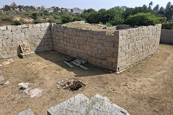 Look what has been recently unearthed at Hampi. Bhojana Shala aka a dining hall, replete with built-in plates and bowls for the guards/ soldiers’ use on special occasions! An active archaeological site, there are new discoveries made here all the time. Some are mundane. And some path-breaking. One can only wonder at what more stories lie under the boulders and palm-fringed dusty planes.