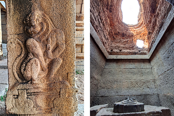 Who says only the wealthy can be patrons? Hampi’s largest shivling at 3 metres tall was commissioned by a Badavi meaning ‘poor’ peasant woman. Look closely and you will see Shiva’s three eyes etched on it.