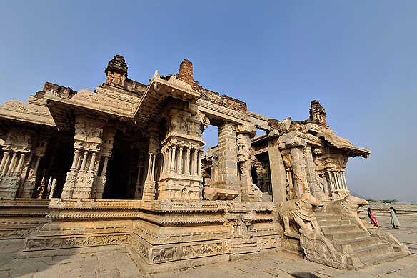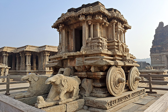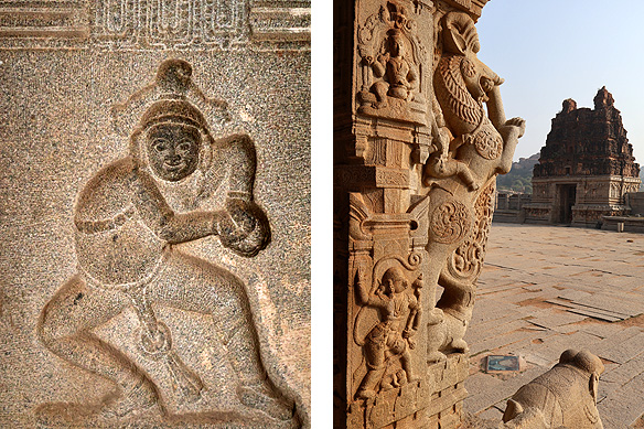 No, you have not been transposed to south-east Asia and are still very much in Hampi. The gopuram and vimana sculptures in Krishna Temple, built by King Krishnadevaraya in 1513 to commemorate his victory in Orissa, look uncannily like those in Cambodia!