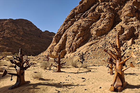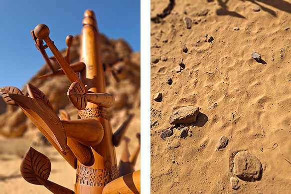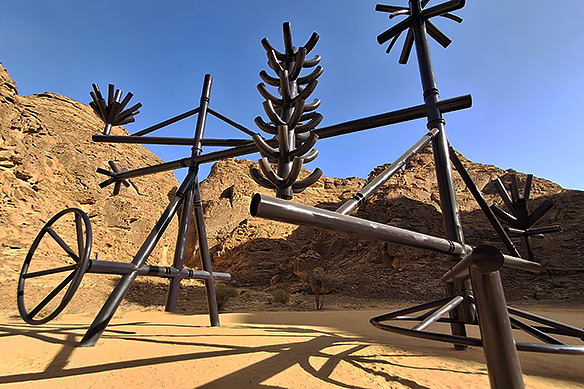Part of his ongoing series of ‘meditation trees’, the installation is an investigation of the tree/ body as a link between heaven and earth, creator and created. His ‘trees’ in Desert X draw inspiration from the Haraza Acacia on the Nile riverbank, and symbolize the various Acacia species that grow in AlUla’s desert canyons, providing shade, nourishment to animals, and firewood.