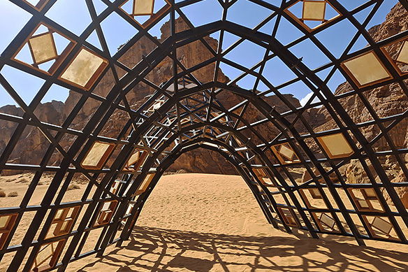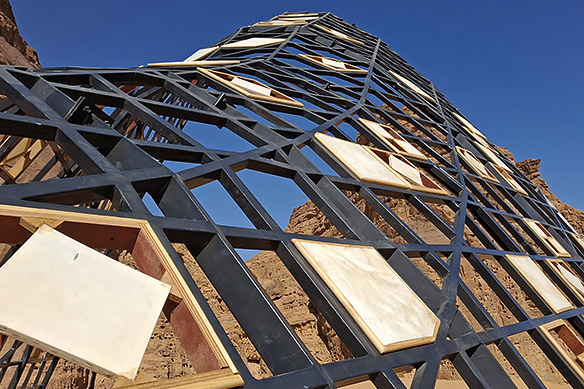 Mexican-born Zamora’s blend of the traditional Saudi drum ‘Tar’ and the saddle-like hyperbolic paraboloid, shortened to ‘hypar,’ activates the whole valley into a musical instrument.