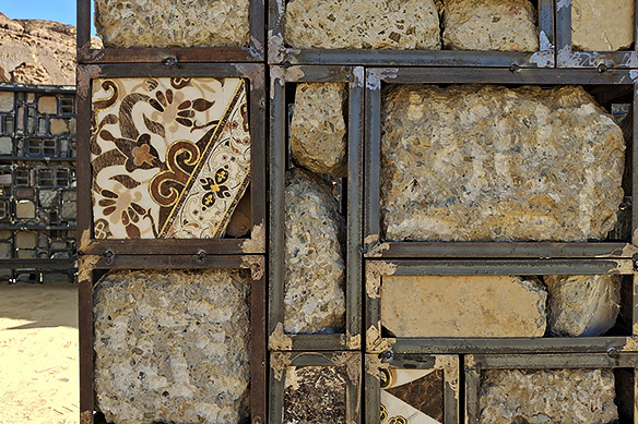 Using rubble from AlUla’s demolished buildings, New Delhi-based Galhotra gives the fragments a new lease of life. For the artist, “embedded in each fragment is a history of water, labour, and aspiration.” Concrete contributes 8 percent to global warming.