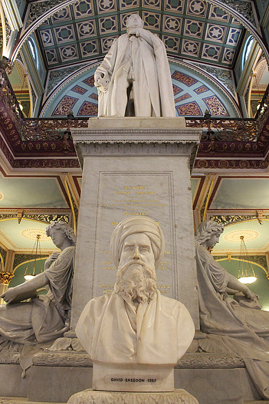 The centrepiece of the museum is a towering statue of Prince Albert, Queen Victoria’s consort, engraved with a dedication by David Sassoon (1864), and flanked by two muses. One muse holds a tablet titled “Science” and the other “Art” referring to the two curated themes of the Industrial Arts Gallery. A bust of Sassoon, who donated the tract of land on which the museum is built, stands at the foot of the statue.