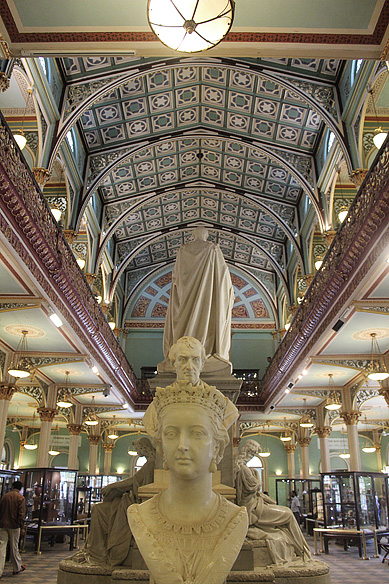 On the other side of the centrepiece is a bust of Queen Victoria (1819 – 1901) as a young woman, and Mountstuart Elphinstone, Governor of Bombay from 1819 to 1827, described as “one of the chief architects of the empire” by the Dictionary of National Biography. An interesting detail: The stars on the ceiling are a reference to Sassoon’s Jewish roots.