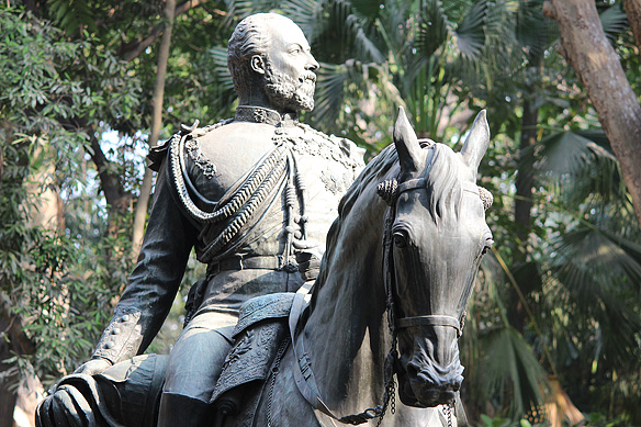 Ever wondered what happened to the Kala Ghoda [Black Horse] of Mumbai’s Fort district. The equestrian statue of King Edward VII, which once enjoyed pride of place on the old Esplanade Road, is now installed in the museum lawns together with the gas lamp that once stood by the Metro Cinema and the 6th century “elephanta” from Elephanta Caves.