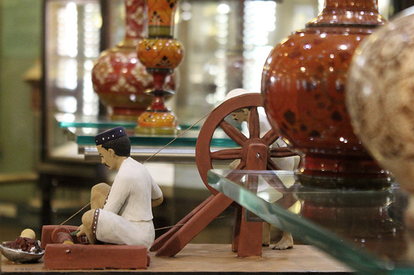 Lac is the resinous incrustation formed on the bark of trees by lac insects. In lac-ware battis, or sticks of lac, are applied onto wooden articles for decoration. The model demonstrates the multi-faceted and laborious process involved in making this art product.